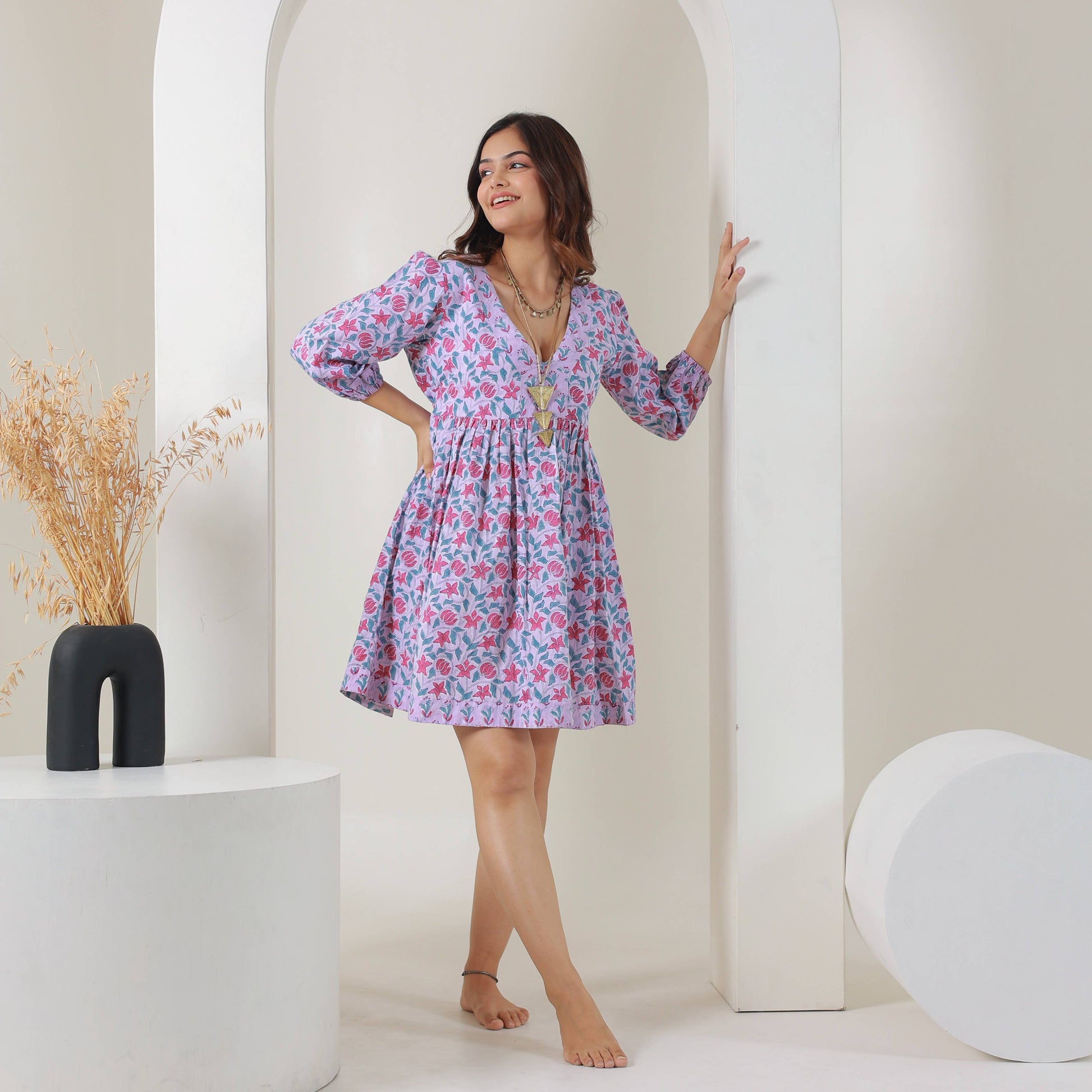 Summer Dress, lavender dress, mini dress, indian dress, block printed dress, boho dress, Swim beach dress, 4th of July, Easter dress