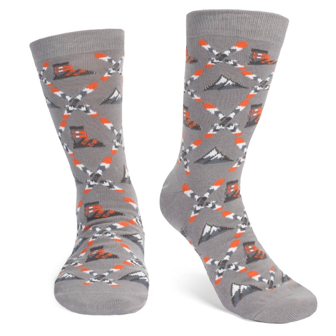 Introducing our dapper crew socks tailored for avid skiers - the perfect fusion of style that looks great for both work and hitting the slopes. These socks boast original, unique art featuring a trendy pattern of skis and mountains, along with a hidden message guaranteed to bring a smile to any skier: "Born to Ski, Forced to Work." These crew-length socks make a perfect gift choice for men who thrive on the thrill of skiing, be it for their birthday, Christmas, or any special occasion. Whether they're carving down the slopes, working at the office, or simply unwinding at the lodge, these socks will be a cherished reminder of your thoughtful gesture.