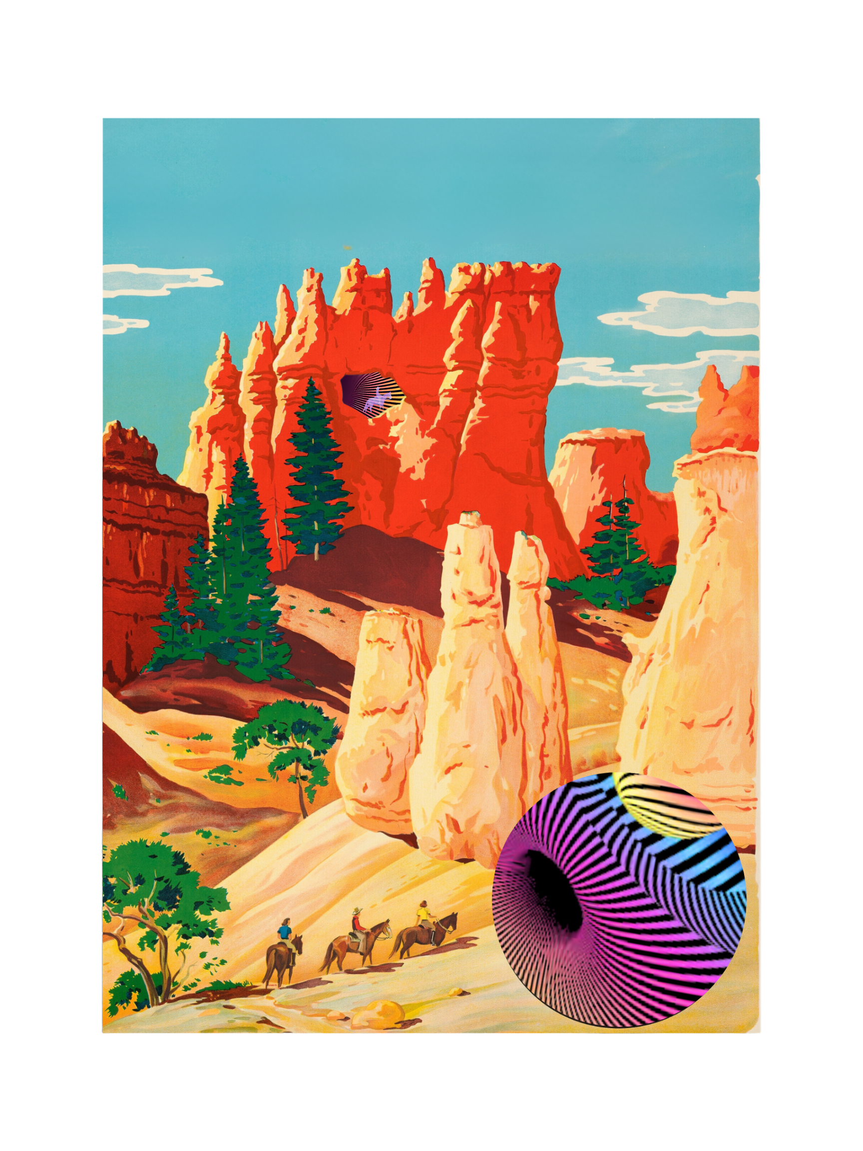 Vintage inspired collage by artist Matt Clark. This piece is inspired by the desert vortex and I sure to turn some heads.