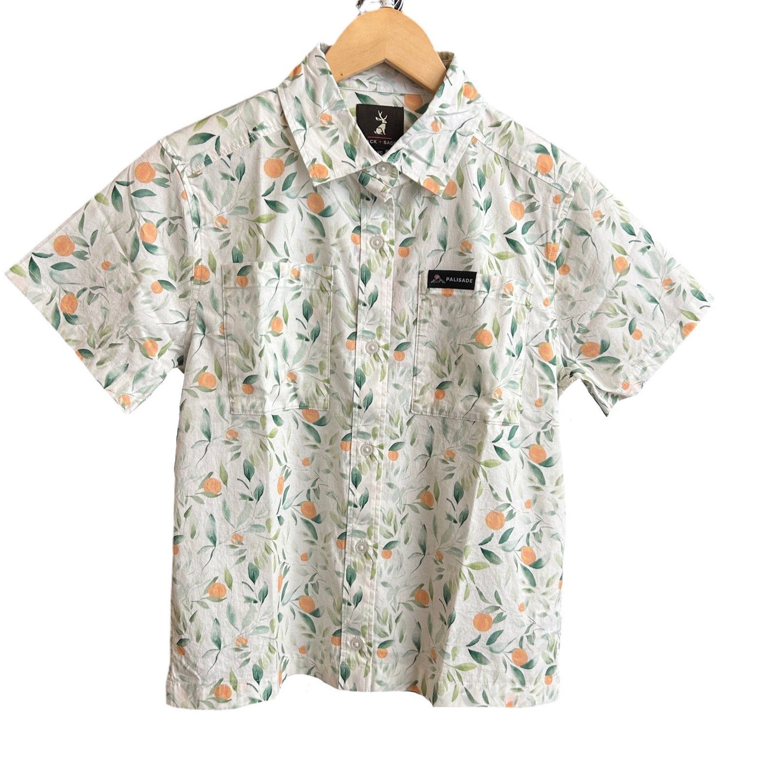 Unleash your inner peachy-keen fashionista with this camp shirt! Featuring a whimsical design of peaches and leaves, this button-up is perfect for showing off your love of Palisade.