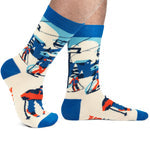 Step into the thrilling world of skiing with our "Don't Worry, Ski Happy" themed socks! These socks are a playful tribute to the joy and excitement of hitting the slopes. Featuring a fun design of skiers in action and a positive message to keep you motivated on the slopes, these socks will bring a smile to your face every time you put them on.