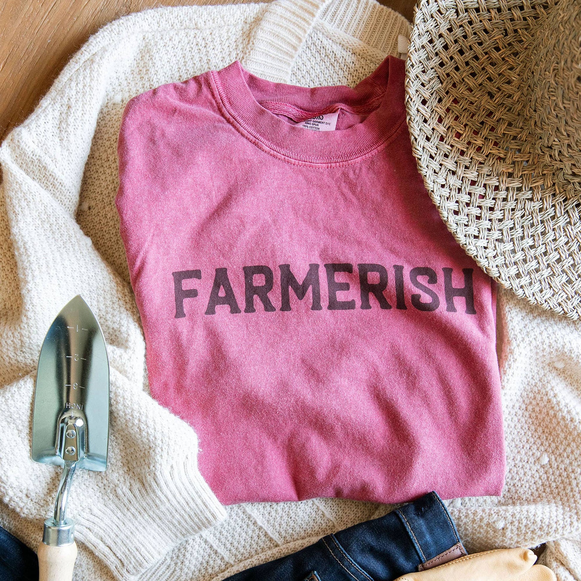 Introducing our Farmerish Tee, the perfect blend of style and homage to the rustic charm of farming and gardening. Crafted with comfort in mind, this tee boasts soft, breathable fabric, making it an ideal choice for both outdoor chores and casual wear. Wear this t-shirt to the farmers market, orchards, or your very own garden no matter the size! Whether you're a seasoned farmer, an avid gardener, or simply appreciate the beauty of nature's harvest, the Farmerish Tee celebrates your connection to the land. Its timeless design makes it a thoughtful gift for birthdays, Christmas, or any occasion, for those farmer-ish folks in your life!
