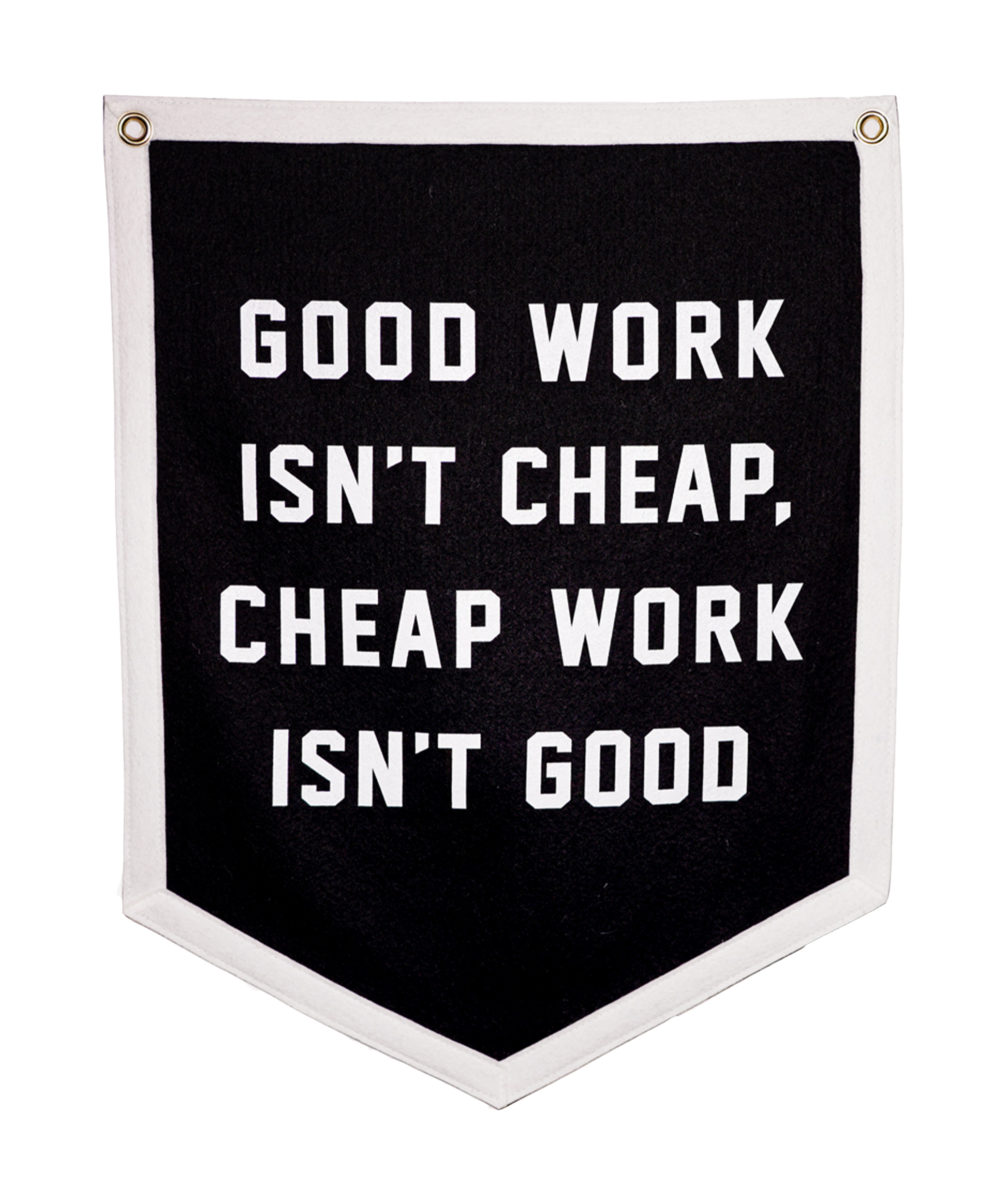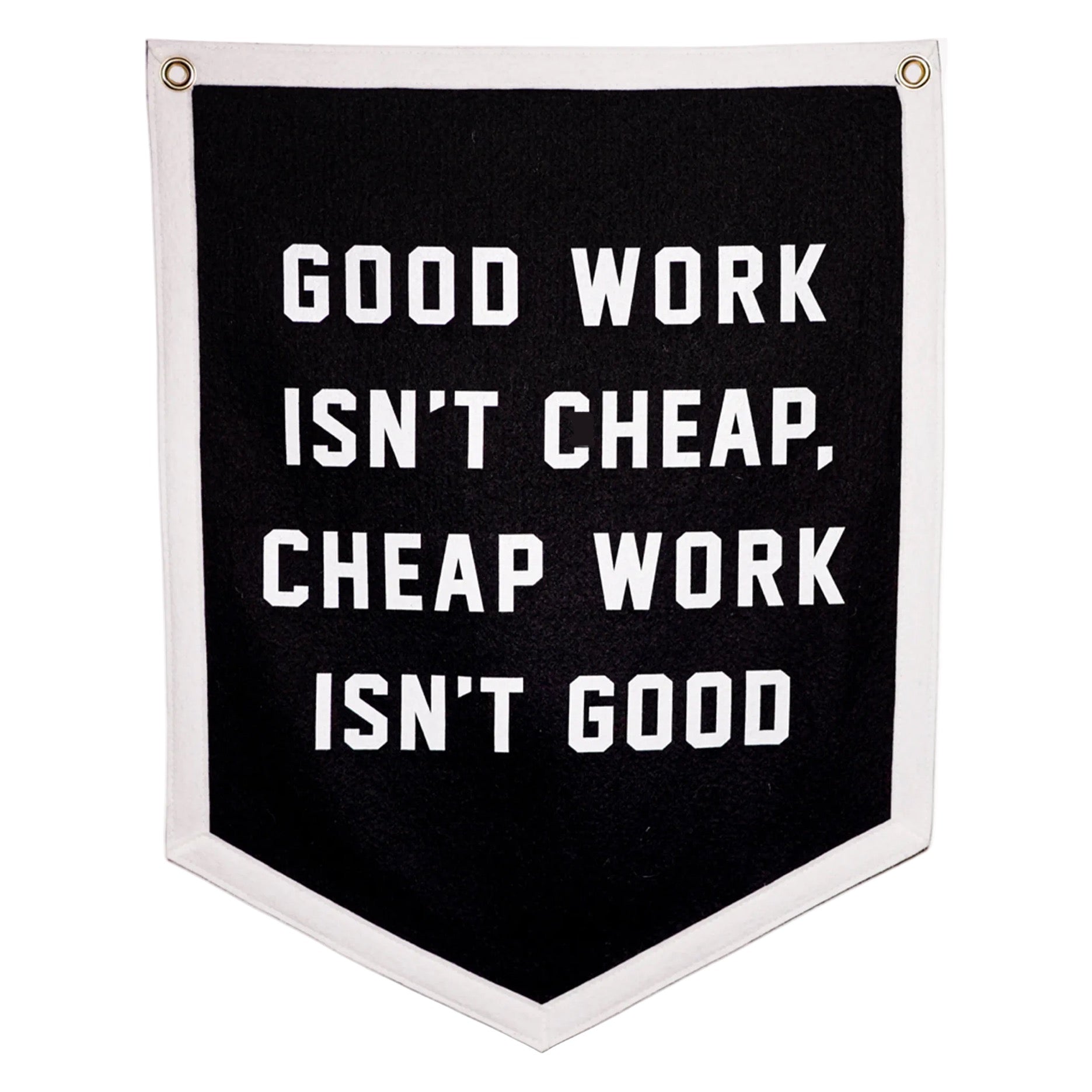 And cheap work isn't good. This black & white camp flag was made in collaboration with our friends at Promises Kept Events and is perfect for anyone who values a strong work ethic and taking the time to do things the right way.
