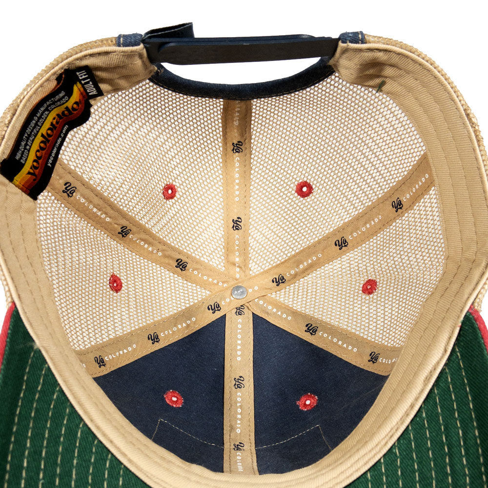 This hat is a must-have for those Coloradans who collect hats. Super comfortable, unconstructed crown, soft cotton and mesh, with an adjustable snapback.