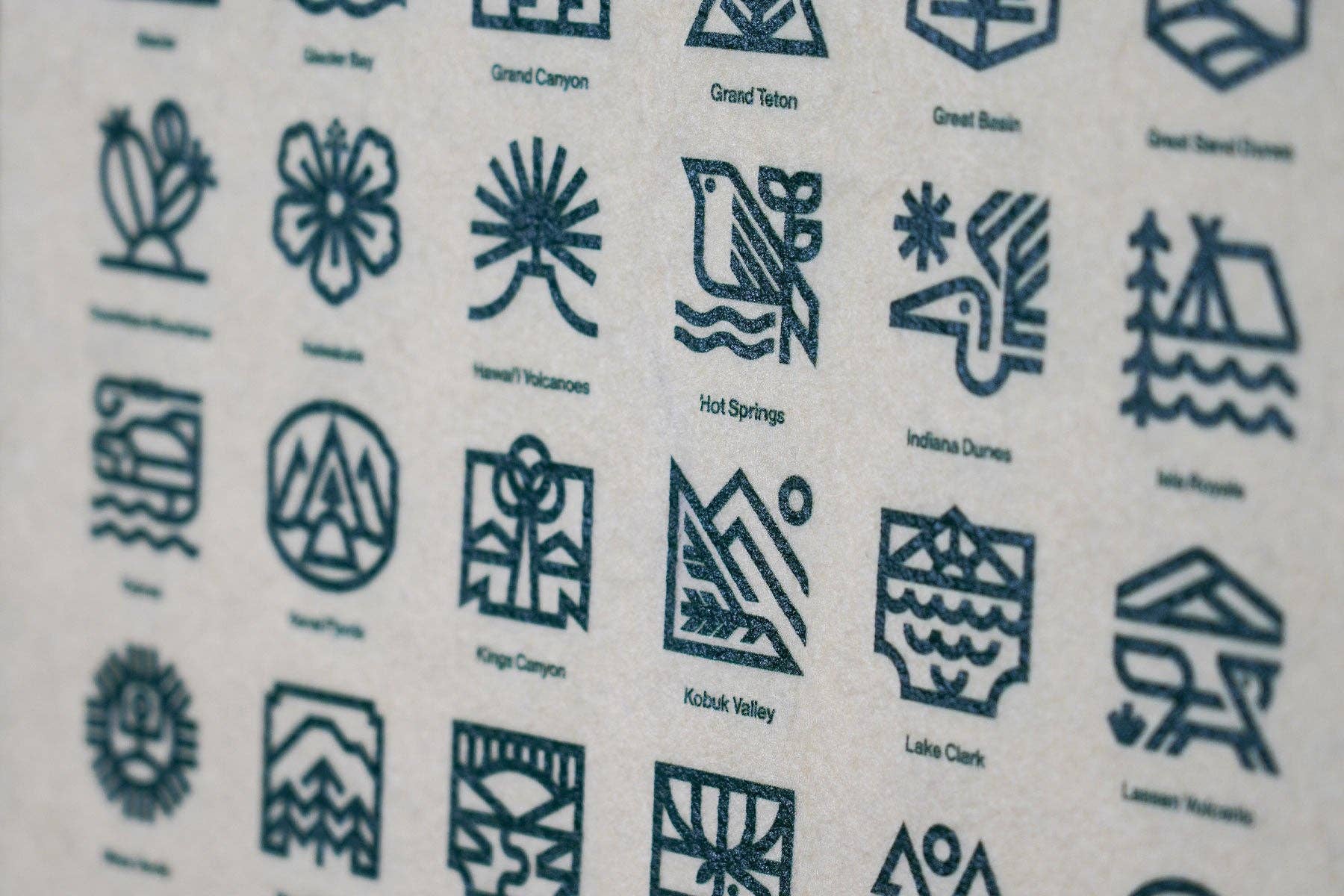Proud friend of Oxford Pennant Steve Wolf has created simple, beautiful logos for all 63 National Parks. Even the ones you haven't heard of! Wolf's complete set of logos now comes to life on this handmade cream and forest green camp flag.