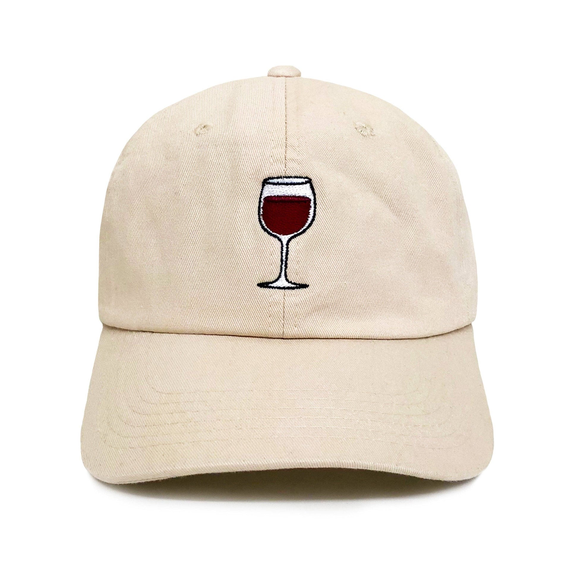 • Sand-tan 6-Panel Dad Hat • 100% Cotton • Adjustable strap • Embroidered Wine emblem